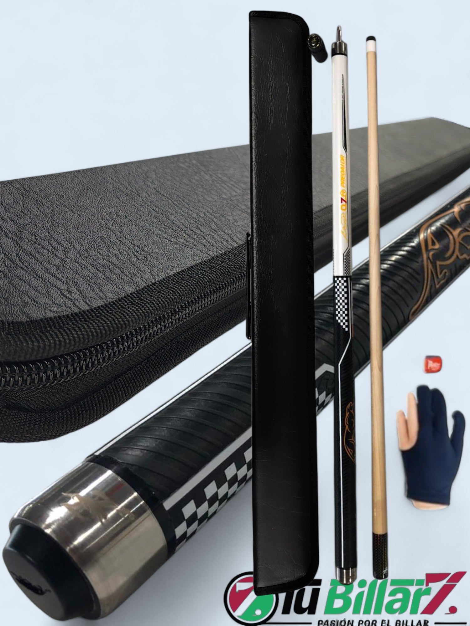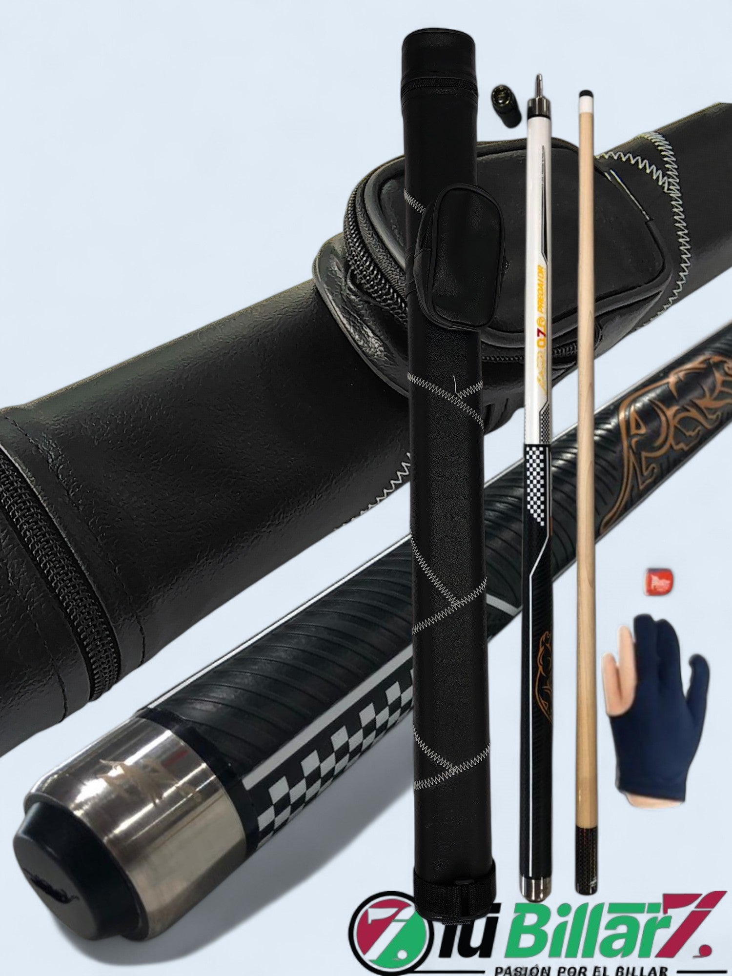 Sí, la mayoría de nuestros tacos vienen en un paquete completo que incluye estuche, guante y tiza, de manera que puedas comenzar a jugar inmediatamente después de recibirlo. Además, contamos con modelos premium que traen accesorios adicionales como extensiones de fibra de carbono y estuches de lujo tipo cajonera. Así garantizamos que cada cliente tenga lo necesario para disfrutar de una experiencia profesional desde el primer día.